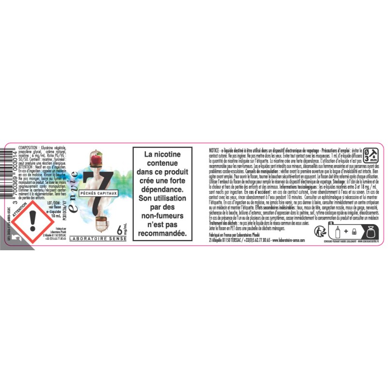 Conformément à la législation européenne, chaque flacon présente un étiquetage avec la dénomination commerciale, la marque, le parfum, la composition du e-liquide, le taux de nicotine, le nom, l’adresse de la société, la date limite d'utilisation optimale et le numéro de lot.
