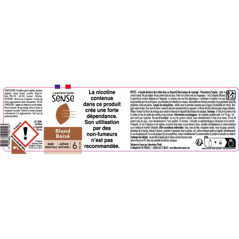 Les eliquides Laboratoire Sense sont fabriqués à partir d’arômes 100% naturel.