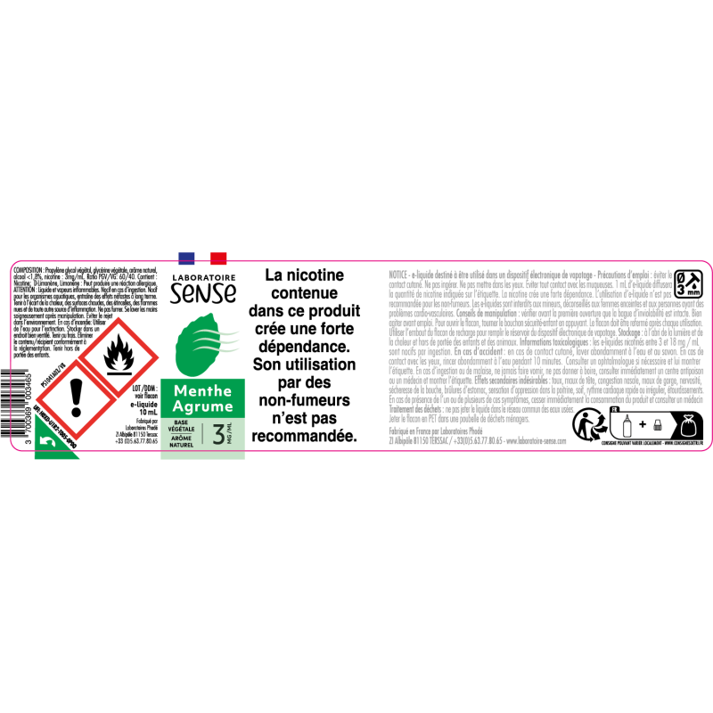 Les eliquides Laboratoire Sense sont fabriqués à partir d’arômes 100% naturel.