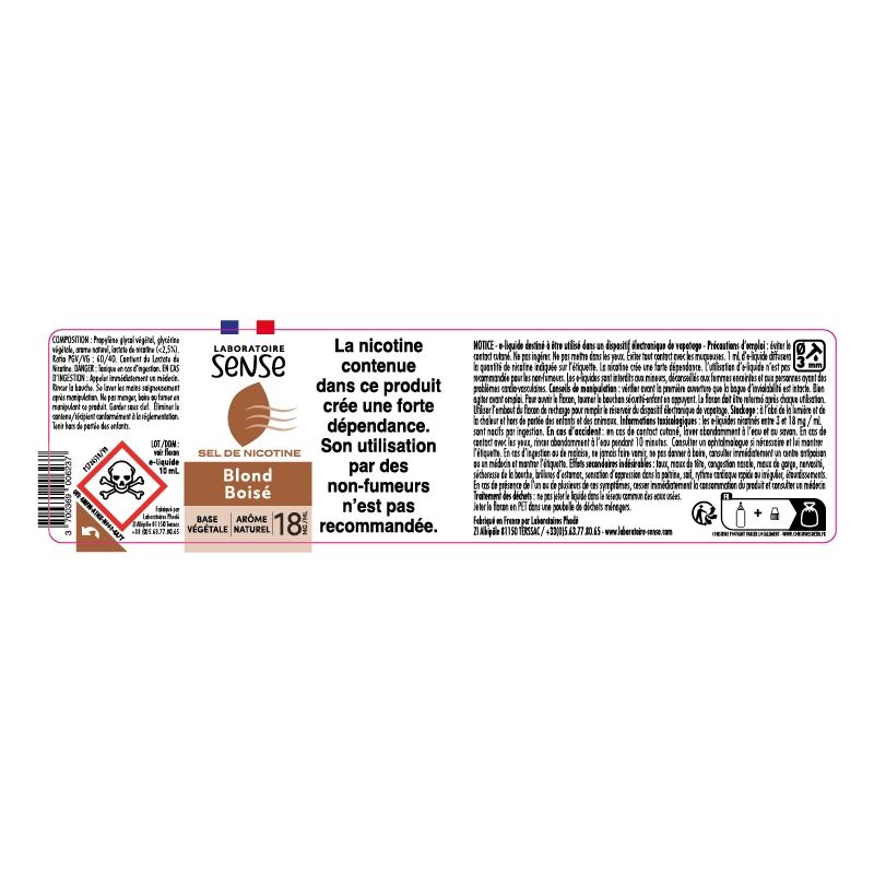 Les eliquides Laboratoire Sense sont fabriqués à partir d’arômes 100% naturel.