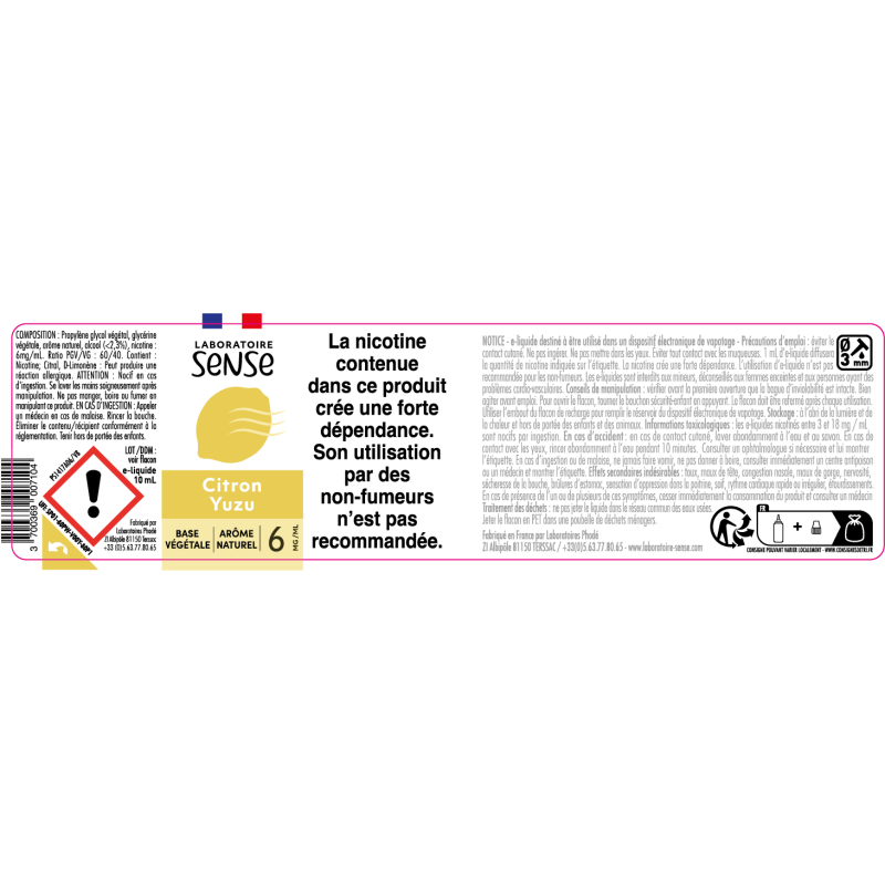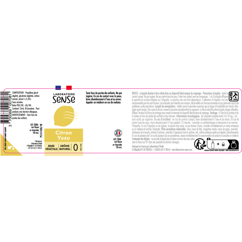 Les e-liquides Laboratoire Sense sont fabriqués à partir d’arômes 100% naturel.