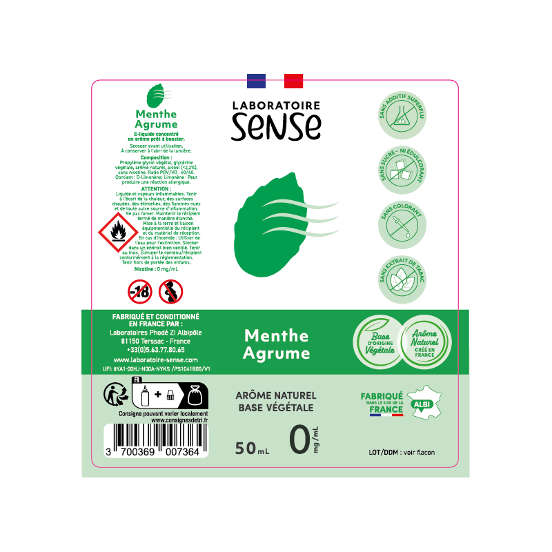 Les eliquides Laboratoire Sense sont fabriqués à partir d’arômes 100% naturel.