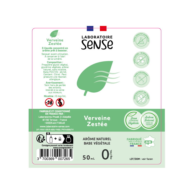Les e-liquides Laboratoire Sense sont fabriqués à partir d’arômes 100% naturel.