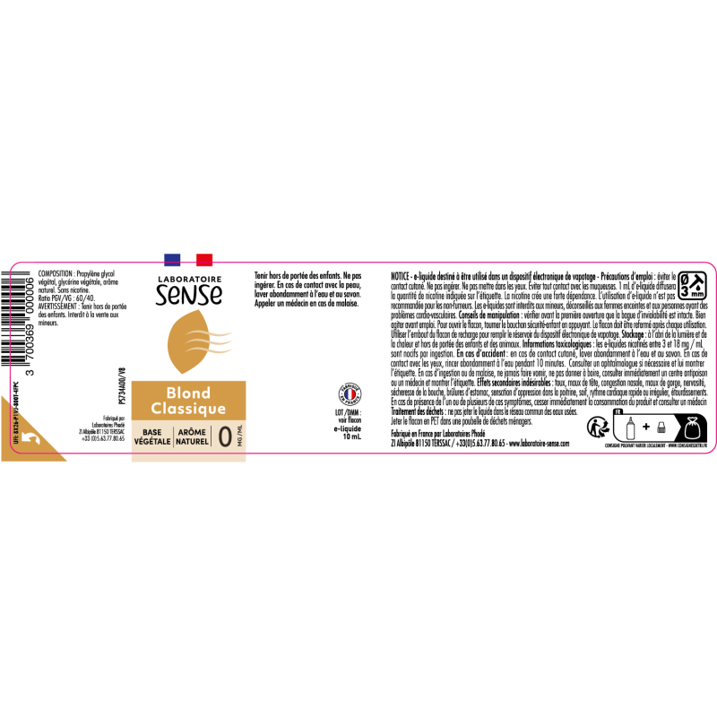 Les eliquides Laboratoire Sense sont fabriqués à partir d’arômes 100% naturel.