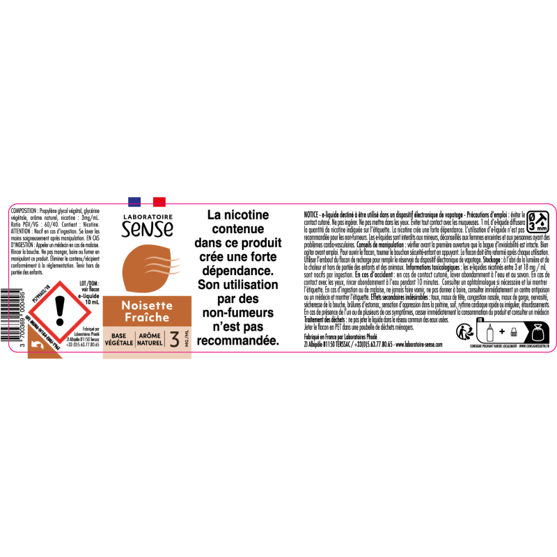 Les eliquides Laboratoire Sense sont fabriqués à partir d’arômes 100% naturel.