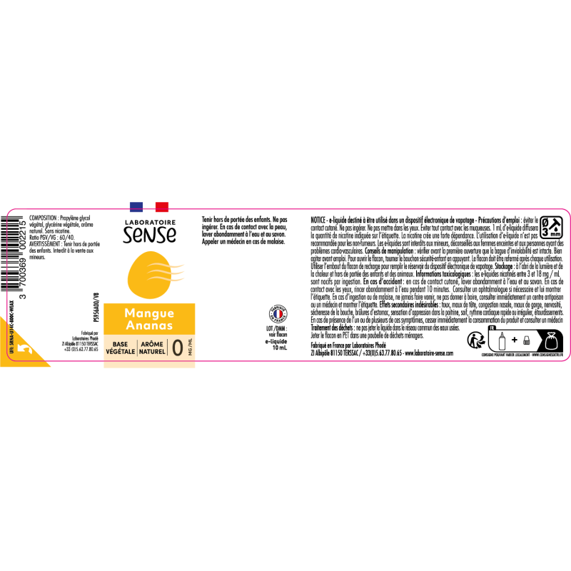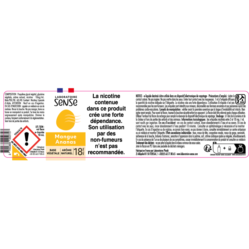 Les eliquides Laboratoire Sense sont fabriqués à partir d’arômes 100% naturel.