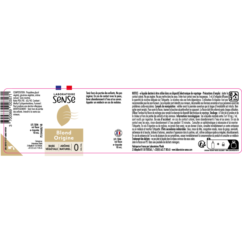 Les eliquides Laboratoire Sense sont fabriqués à partir d’arômes 100% naturel.