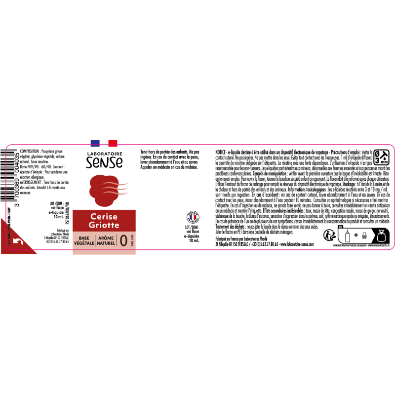 Les eliquides Laboratoire Sense sont fabriqués à partir d’arômes 100% naturel.