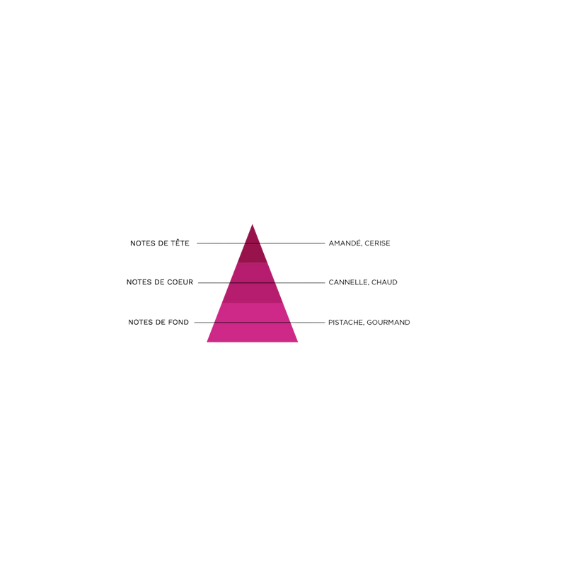 Grâce au savoir-faire de nos aromaticien(ne)s, vous retrouverez en bouche une délicieuse saveur de cerise, pistache et une pointe de cannelle.